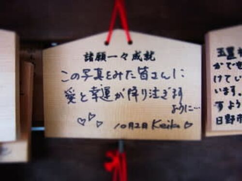 絵馬ネタの頻度が上がってるような気がしますが、その気がなくてもネタがどんどん集まっちゃうもんで、 あんまり溜めこんでもしょうがないから放出しますよ。 笑顔!!で 「毎日幸せで過ごせますように!!」のあと、ふきだしの中に 「びんぼうじゃなくなり…