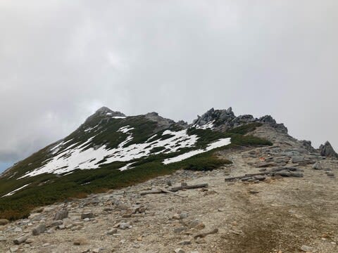 だいたい溶けてるんだけど、ちょっと凍ってる。視界が悪いと怖い。チェーンアイゼン(靴にチェーンとゴムで装着するスパイクのようなもの)ぐらい持ってくればよかったと思った。結局なくて済んだ。しかし、6月はちょっと早かったかもしれない。