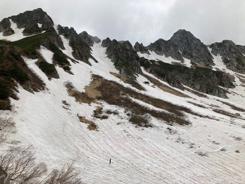 乗越浄土まで登ってしまえば、夏なら木曽駒ケ岳まで楽々いける尾根歩きなのだが、落石と雪崩の恐怖がストレスとなり、視界も足場も悪いから、夏にまた来ようと思って素直にカールをじりじり下った。ピッケルで舵を取りながら雪上を座位で滑り降りる男がいて、滑落してるようにも見えるが、あれは歩行の労を省いた天然のすべり台テクニックらしかった。服が傷みそうだし、ピッケルなど持ち合わせないから真似するのは差し控えた。